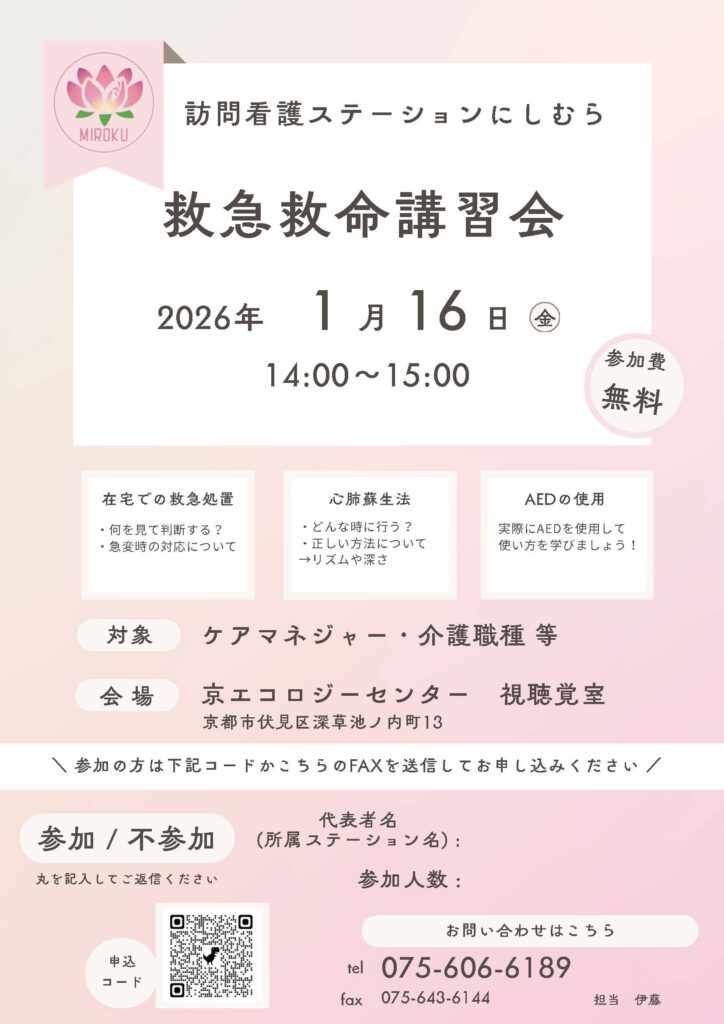 【無料】介護職・ケアマネージャー向け 救急救命講習会のご案内